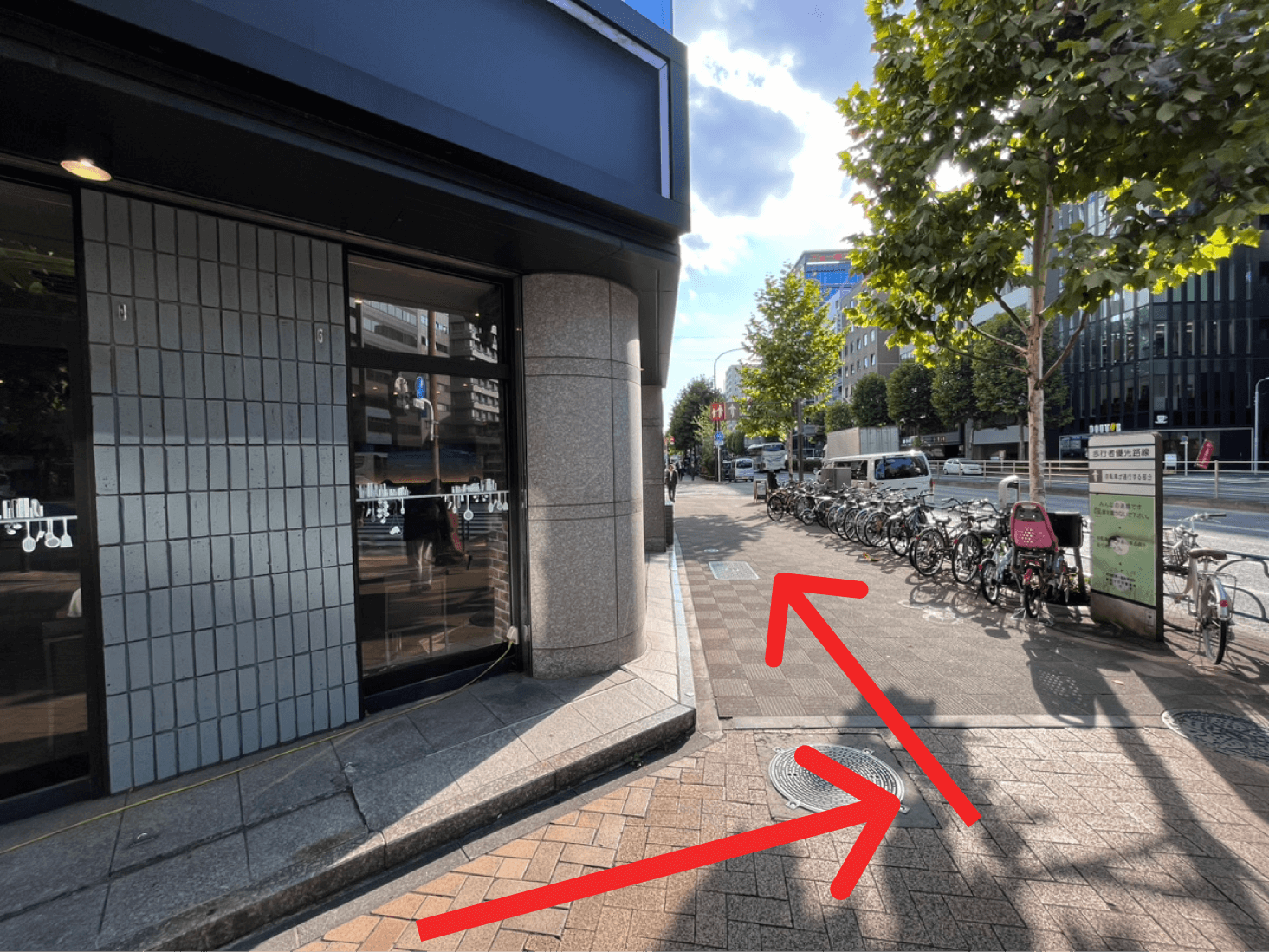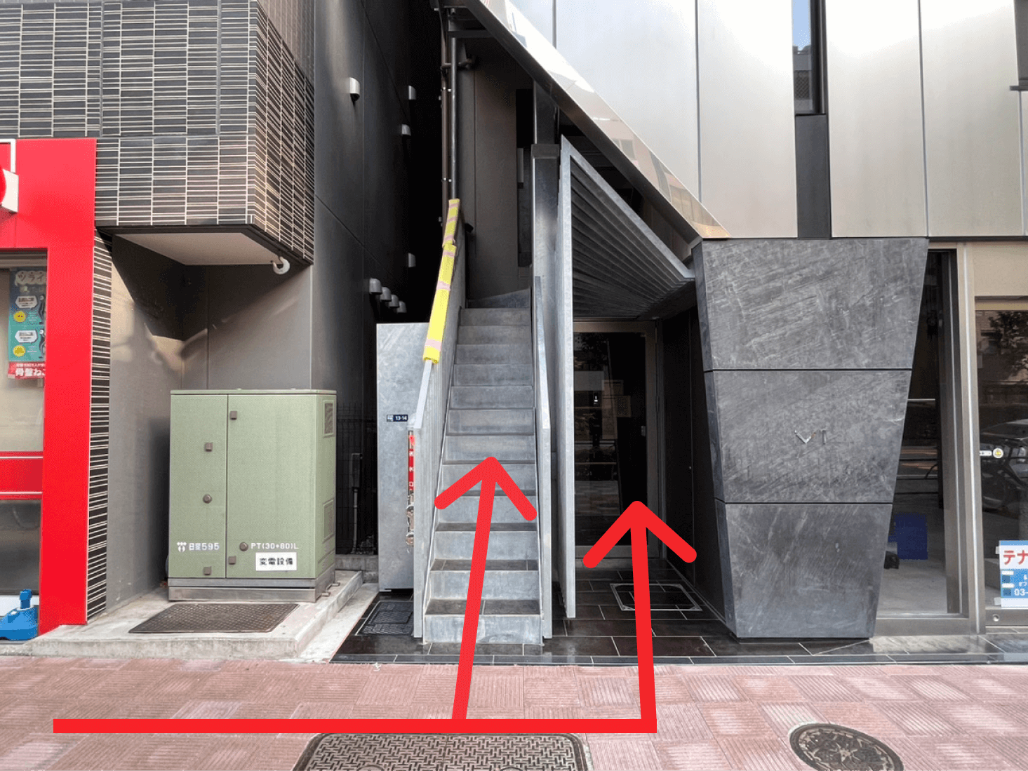 “V1″のロゴが入ったビルが左手に見えますので、階段/エレベーターで2Fへお越しください。